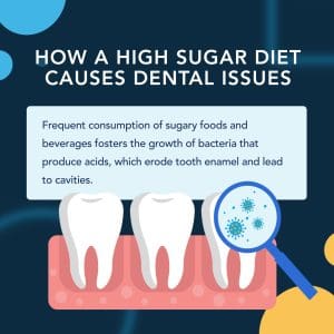 Sugars contribute to tooth decay by fueling bacteria that produce harmful acids in the mouth. Encouraging healthier snack choices and minimizing the intake of candy, soda, and juice can significantly reduce the risk of cavities and promote stronger, healthier teeth.
