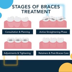Once your braces or aligners are in place, the active straightening phase begins. This is the stage where your teeth gradually shift into alignment with the help of brackets, wires, or clear aligners. During this phase, it’s essential to follow your orthodontist’s instructions carefully, including avoiding certain foods, maintaining good oral hygiene, and attending regular check-ups to monitor progress.Â